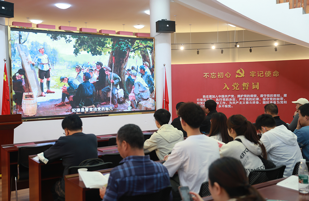 在大別山精神紅色文化展覽館,公司黨員干部跟隨“曙光初照大別山——星火燎原鄂豫皖——千里躍進迎解放”歷史卷軸,通過一張張泛黃照片,一段段紅色故事,重溫了鄂豫皖革命根據地波瀾壯闊的光輝歷史,緬懷了革命先烈們的豐功偉績。大家還通過觀看紅色影片,重走紅軍路,切身實地接受“大別山精神”的洗禮,堅定了全體黨員干部不忘初心,永遠跟黨走的理想信念。