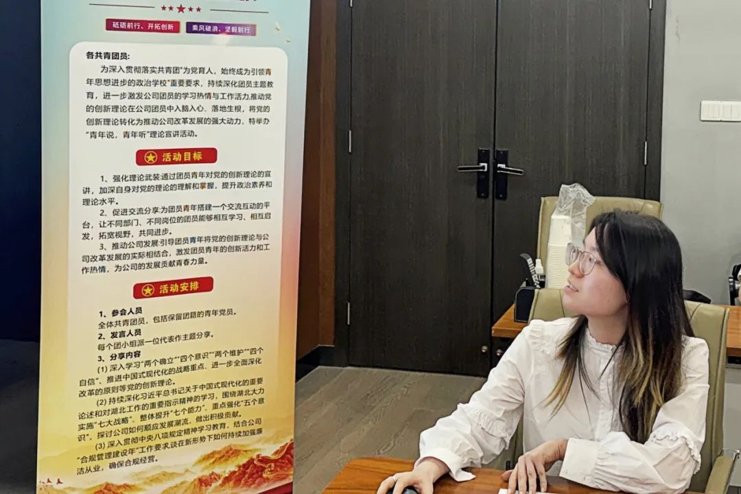 活動期間,各團小組代表圍繞學習貫徹黨的創新理論開展主題交流。大家一致認為,要不斷增強“四個意識”、堅定“四個自信”、做到“兩個維護”,持續深化“黨旗領航·團旗飄揚”品牌引領,鍥而不舍貫徹中央八項規定精神,強化合規意識,嚴守合規底線,做廉潔合規的踐行者和傳播者,為公司發展護航。同時要突出公司團員青年在培育新質生產力、創新合規機制中的生力軍作用,通過理論指導實踐,全面激發團員青年投身湖北支點建設的積極性和創造性,為公司高質量發展貢獻力量,在支點建設中挺膺擔當。